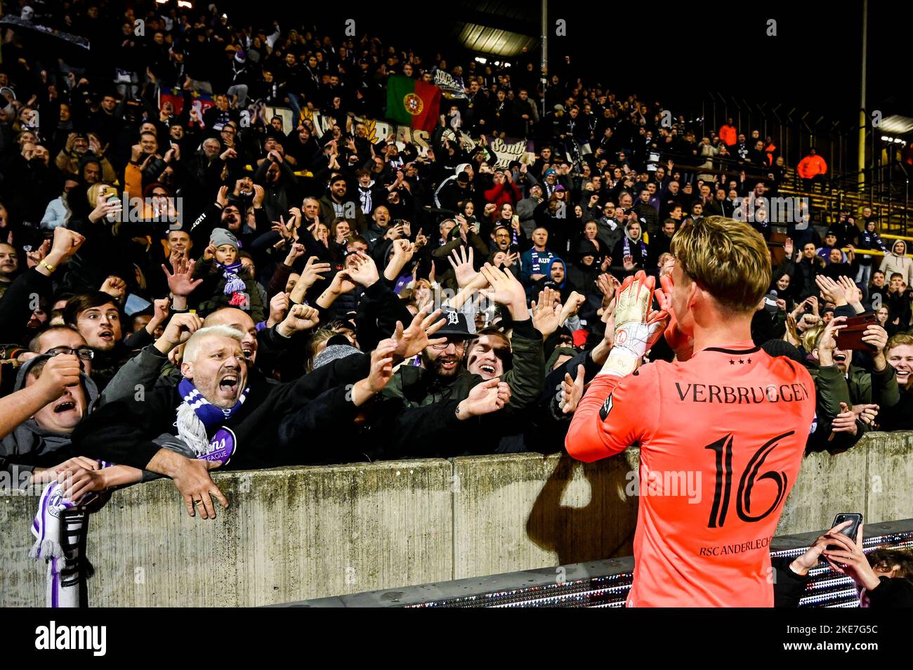 Lier Belgien 10 11 2022 Anderlechts Torhuter Bart Verbruggen Feiert Nach Dem Gewinn Eines Fussballspiels Zwischen Lierse Kempenzonen 1b Und Rsc Anderlecht Am Donnerstag Den 10 November 2022 In Lier Im Finale Des Belgischen